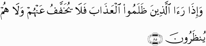 And when those who wronged see the punishment, it will not be lightened for them, nor will they be reprieved.