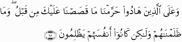 And to those who are Jews We have prohibited that which We related to you before. And We did not wrong them [thereby], but they were wronging themselves.