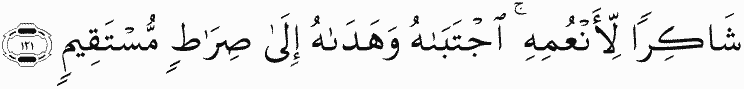 [He was] grateful for His favors. Allah chose him and guided him to a straight path.