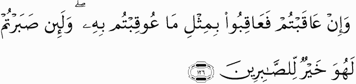 And if you punish [an enemy, O believers], punish with an equivalent of that with which you were harmed. But if you are patient - it is better for those who are patient.