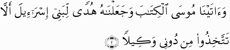 And We gave Moses the Scripture and made it a guidance for the Children of Israel that you not take other than Me as Disposer of affairs,
