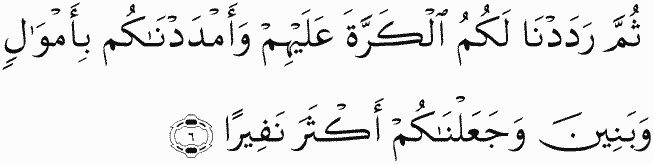 Then We gave back to you a return victory over them. And We reinforced you with wealth and sons and made you more numerous in manpower