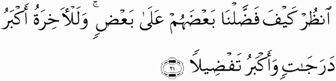 Look how We have favored [in provision] some of them over others. But the Hereafter is greater in degrees [of difference] and greater in distinction.