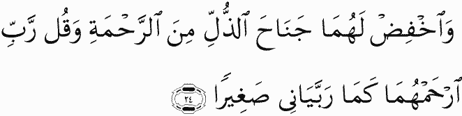 And lower to them the wing of humility out of mercy and say, "My Lord, have mercy upon them as they brought me up [when I was] small."