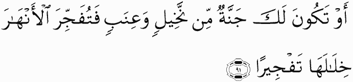 Or [until] you have a garden of palm tress and grapes and make rivers gush forth within them in force [and abundance]
