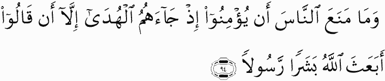 And what prevented the people from believing when guidance came to them except that they said, "Has Allah sent a human messenger?"