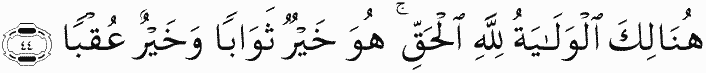 There the authority is [completely] for Allah , the Truth. He is best in reward and best in outcome.