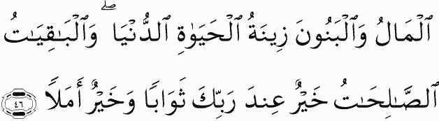 Wealth and children are [but] adornment of the worldly life. But the enduring good deeds are better to your Lord for reward and better for [one's] hope.