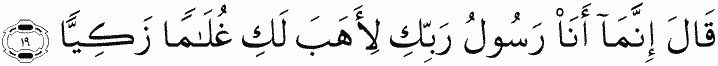 He said, "I am only the messenger of your Lord to give you [news of] a pure boy."