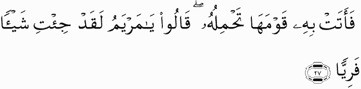 Then she brought him to her people, carrying him. They said, "O Mary, you have certainly done a thing unprecedented.
