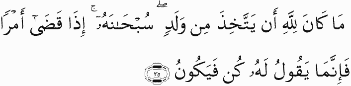 It is not [befitting] for Allah to take a son; exalted is He! When He decrees an affair, He only says to it, "Be," and it is.