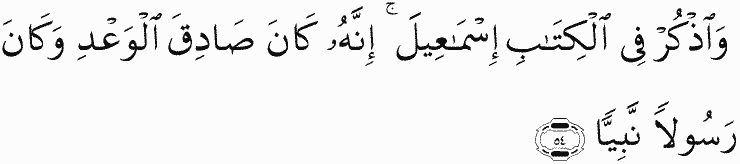 And mention in the Book, Ishmael. Indeed, he was true to his promise, and he was a messenger and a prophet.
