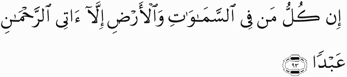 There is no one in the heavens and earth but that he comes to the Most Merciful as a servant.