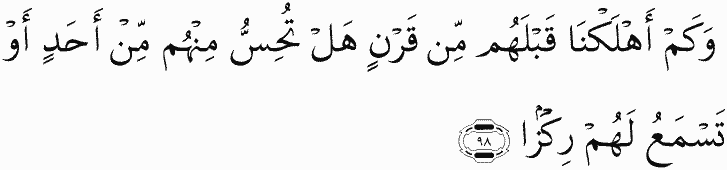 And how many have We destroyed before them of generations? Do you perceive of them anyone or hear from them a sound?