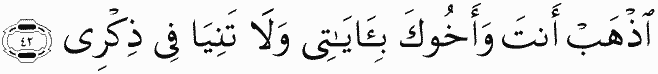 Go, you and your brother, with My signs and do not slacken in My remembrance.