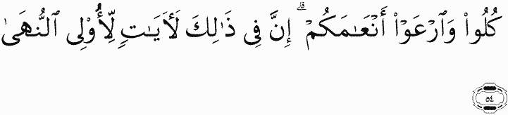 Eat [therefrom] and pasture your livestock. Indeed, in that are signs for those of intelligence.