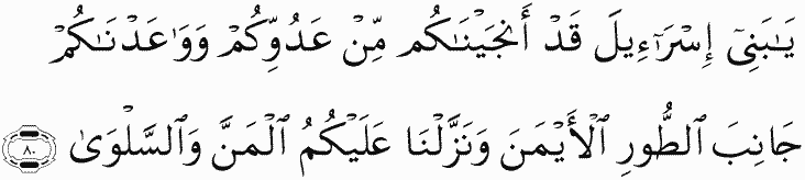 O Children of Israel, We delivered you from your enemy, and We made an appointment with you at the right side of the mount, and We sent down to you manna and quails,