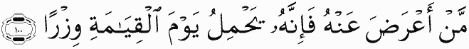 Whoever turns away from it - then indeed, he will bear on the Day of Resurrection a burden,