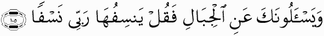 And they ask you about the mountains, so say, "My Lord will blow them away with a blast.