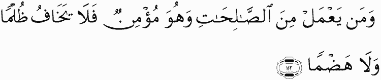 But he who does of righteous deeds while he is a believer - he will neither fear injustice nor deprivation.