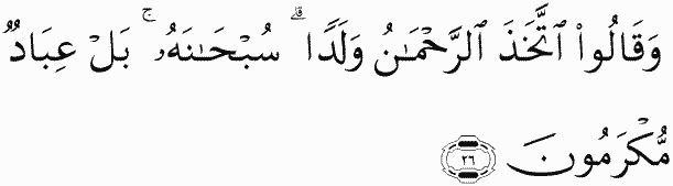 And they say, "The Most Merciful has taken a son." Exalted is He! Rather, they are [but] honored servants.