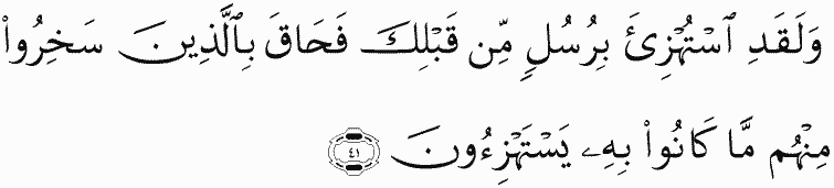And already were messengers ridiculed before you, but those who mocked them were enveloped by what they used to ridicule.