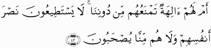Or do they have gods to defend them other than Us? They are unable [even] to help themselves, nor can they be protected from Us.