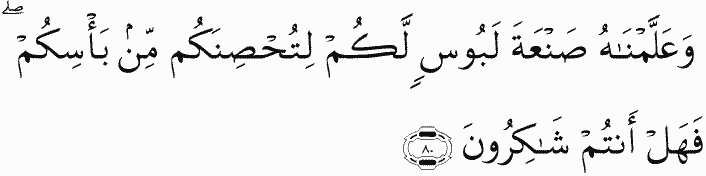 And We taught him the fashioning of coats of armor to protect you from your [enemy in] battle. So will you then be grateful?