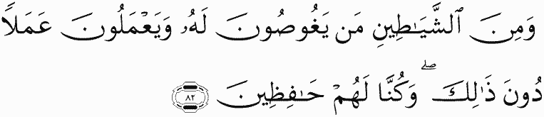 And of the devils were those who dived for him and did work other than that. And We were of them a guardian.