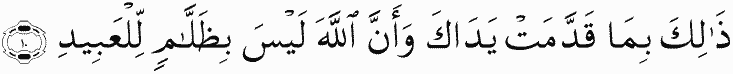 "That is for what your hands have put forth and because Allah is not ever unjust to [His] servants."
