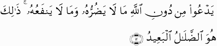 He invokes instead of Allah that which neither harms him nor benefits him. That is what is the extreme error.