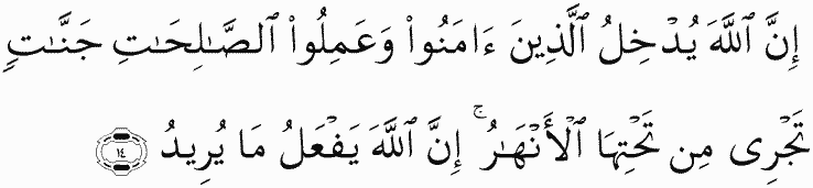 Indeed, Allah will admit those who believe and do righteous deeds to gardens beneath which rivers flow. Indeed, Allah does what He intends.