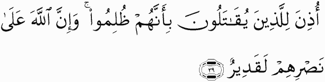 Permission [to fight] has been given to those who are being fought, because they were wronged. And indeed, Allah is competent to give them victory.