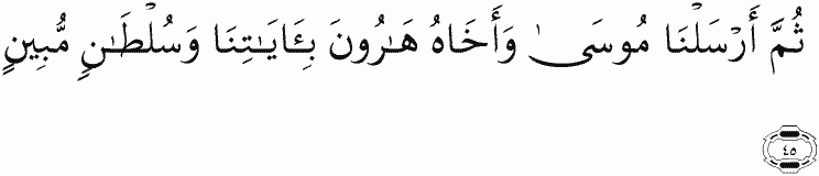 Then We sent Moses and his brother Aaron with Our signs and a clear authority