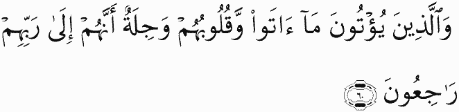 And they who give what they give while their hearts are fearful because they will be returning to their Lord -