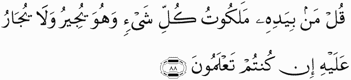 Say, "In whose hand is the realm of all things - and He protects while none can protect against Him - if you should know?"