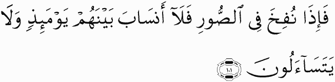 So when the Horn is blown, no relationship will there be among them that Day, nor will they ask about one another.
