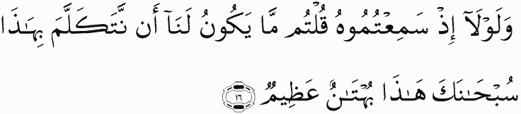And why, when you heard it, did you not say, "It is not for us to speak of this. Exalted are You, [O Allah ]; this is a great slander"?