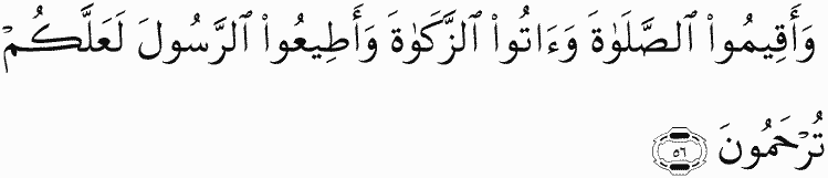 And establish prayer and give zakah and obey the Messenger - that you may receive mercy.