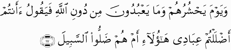 And [mention] the Day He will gather them and that which they worship besides Allah and will say, "Did you mislead these, My servants, or did they [themselves] stray from the way?"