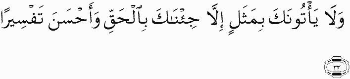 And they do not come to you with an argument except that We bring you the truth and the best explanation.