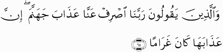 And those who say, "Our Lord, avert from us the punishment of Hell. Indeed, its punishment is ever adhering;