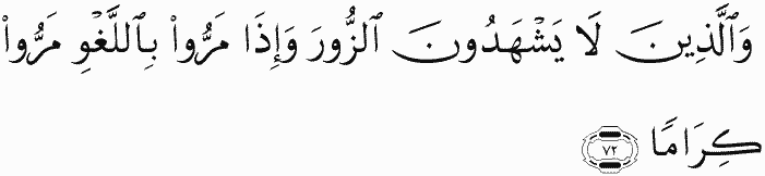 And [they are] those who do not testify to falsehood, and when they pass near ill speech, they pass by with dignity.