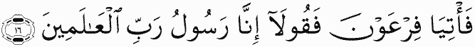 Go to Pharaoh and say, 'We are the messengers of the Lord of the worlds,