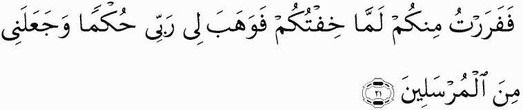 So I fled from you when I feared you. Then my Lord granted me wisdom and prophethood and appointed me [as one] of the messengers.