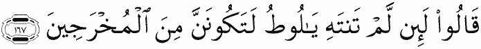 They said, "If you do not desist, O Lot, you will surely be of those evicted."
