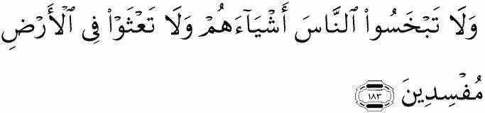 And do not deprive people of their due and do not commit abuse on earth, spreading corruption.