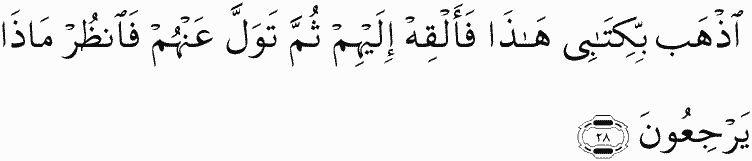 Take this letter of mine and deliver it to them. Then leave them and see what [answer] they will return."