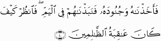 So We took him and his soldiers and threw them into the sea. So see how was the end of the wrongdoers.