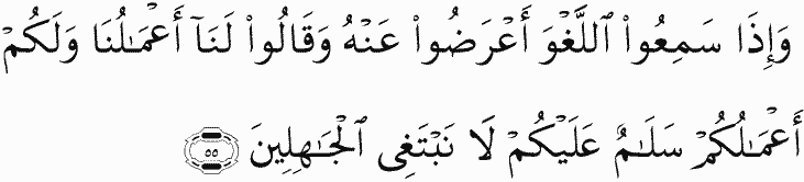 And when they hear ill speech, they turn away from it and say, "For us are our deeds, and for you are your deeds. Peace will be upon you; we seek not the ignorant."
